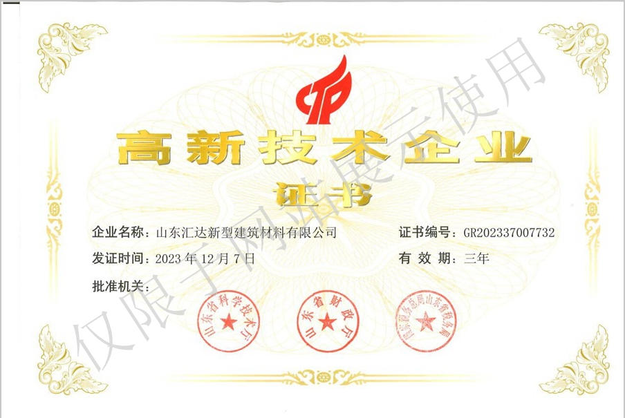 山东汇达新型建筑材料有限公司高新技术企业证书