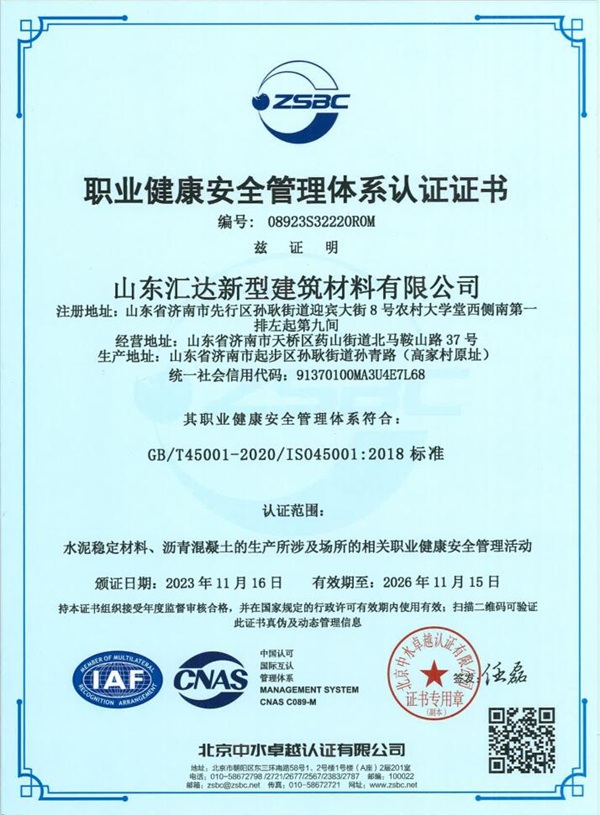 山东汇达新型建筑材料有限公司职业健康