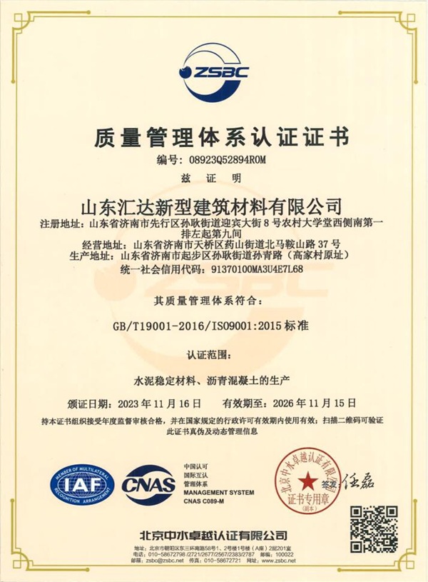 山东汇达新型建筑材料有限公司质量体系